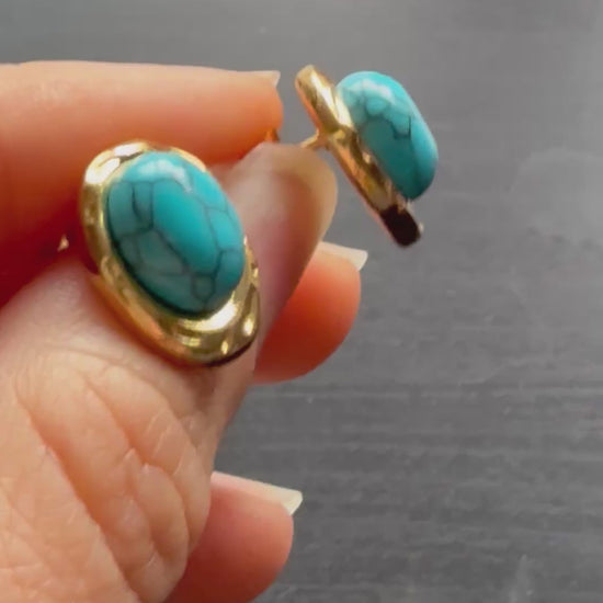 Blue chic – pozlacené náušnice s tyrkysovým kamenem