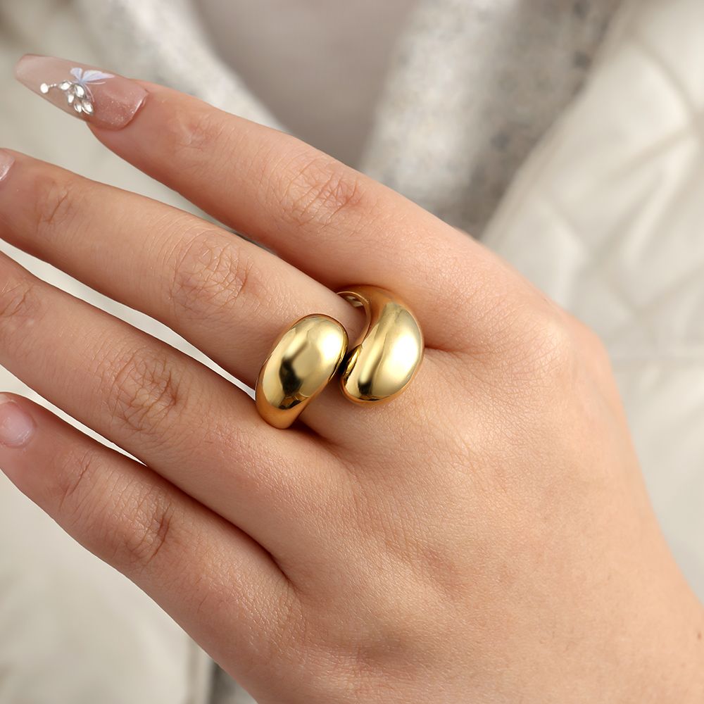 Výrazný chunky prstýnek dvě kapky je jako kdybys nasadila sochařský objekt na prst – tenhle prsten nepřehlédne nikdo, ani když jen držíš kafe. Je jemně retro, dostatečně odvážný a hlavně pohodlný, protože i bold věci můžou být easy.