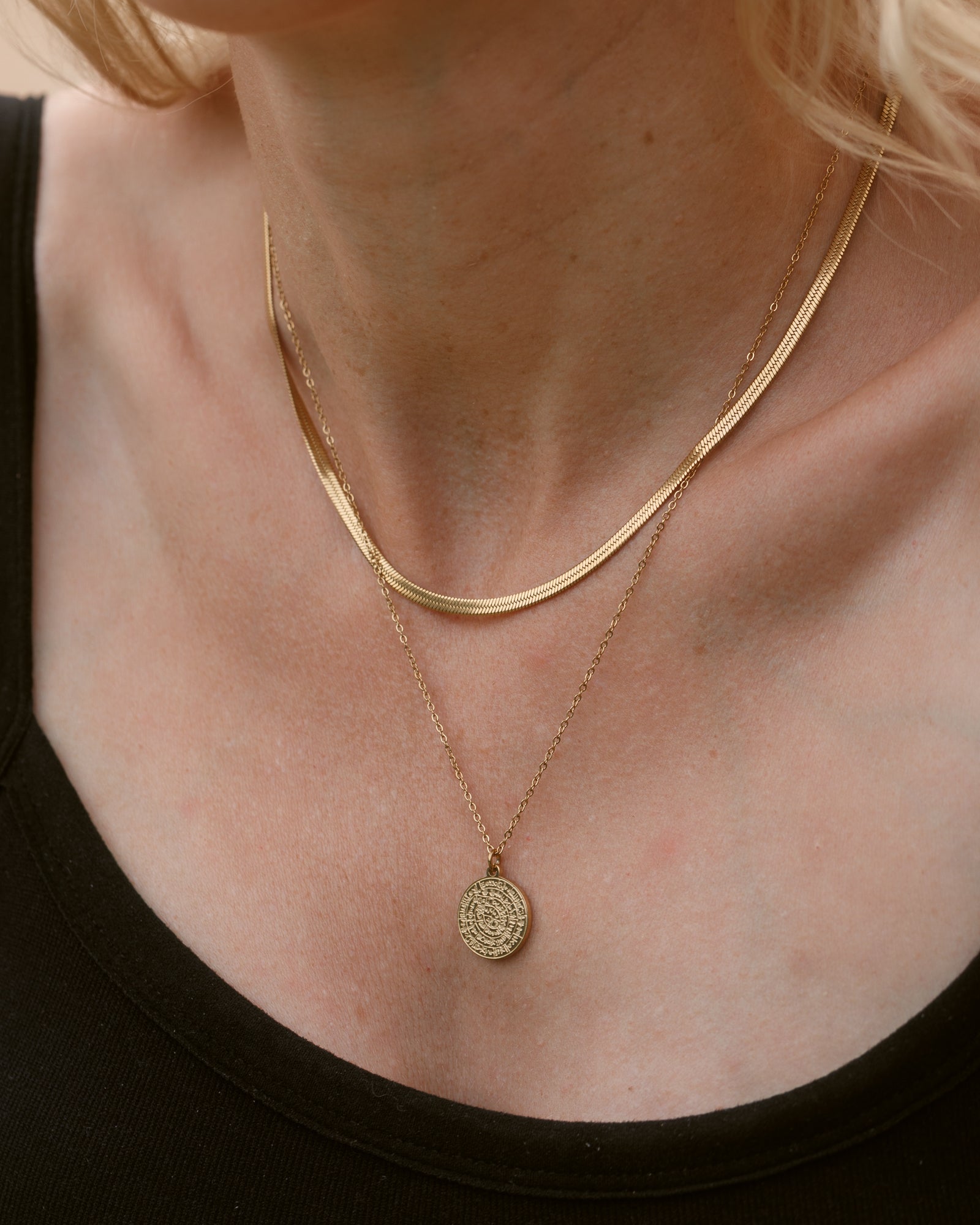 Náhrdelník Bali style v sobě spojuje exotický nádech Bali a moderní minimalistickou eleganci. Dvojité vrstvení působí trendy a šperk tak okamžitě přitáhne pozornost – ať už ho vezmeš k letním šatům, bílé košili nebo večernímu outfitu. Kulatý přívěsek s jemným vzorem připomíná mandalu, která symbolizuje rovnováhu, klid a harmonii.