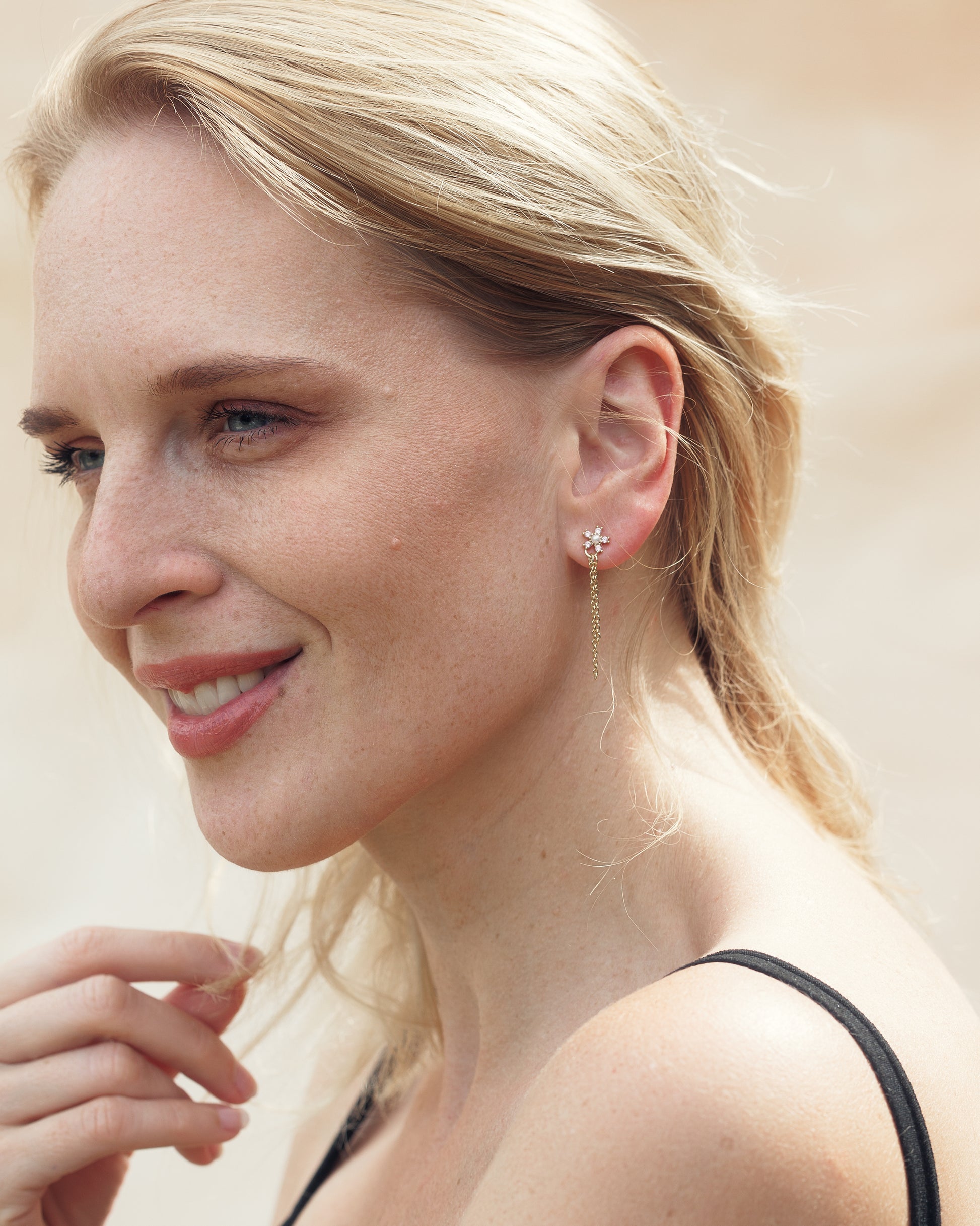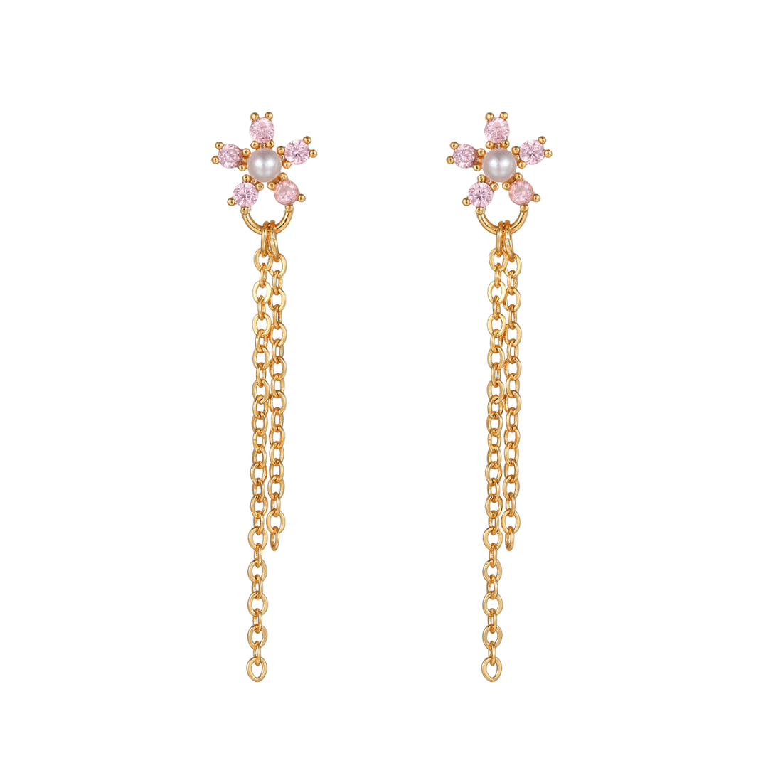 🌸 Jemné, ale s twistem. Květinové náušnice Sakura spirit s růžovými zirkoniemi a perlovým středem jsou vyrobené ze stříbra 925/1000 působí něžně, zatímco tři visící řetízky jim dávají špetku drzosti. Díky tomu jsou perfektním doplňkem pro chvíle, kdy chceš být romantická, ale zároveň ukázat, že se s tebou musí počítat.