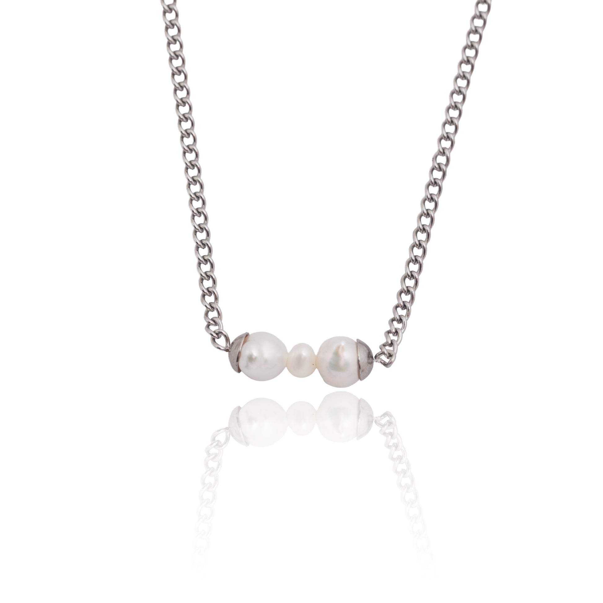 Náhrdelník Little Pearl Story je něžná verze rodinného talismanu – dvě větší perly symbolizují rodiče a jedna drobná perlička mezi nimi představuje jejich dítě. Jednoduchý, čistý, a přesto plný významu.