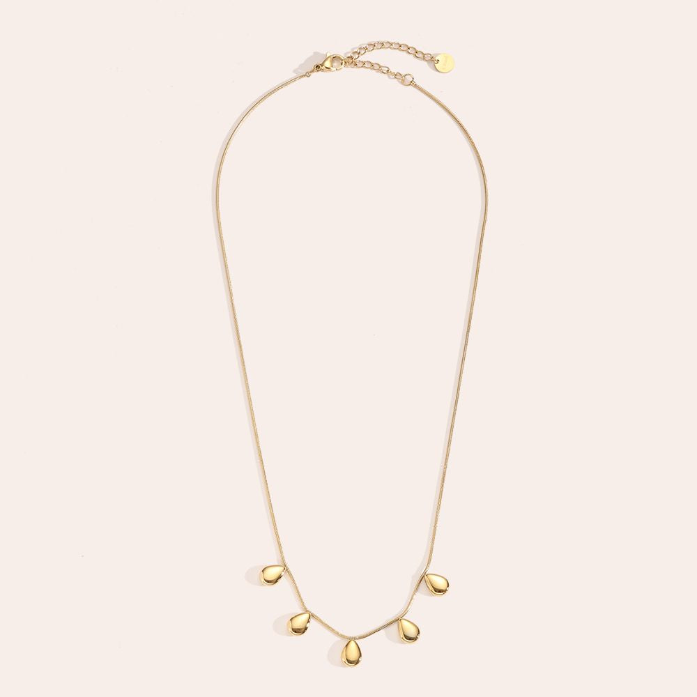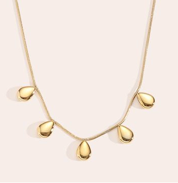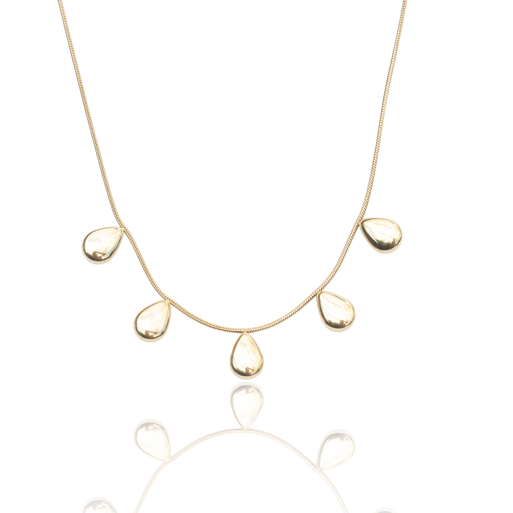 Jako letní déšť na rozpálené kůži. Náhrdelník Golden Drops je jemný, ale má efekt – pět zlatých kapek ti spadne přes klíční kosti a vykouzlí tu správnou rovnováhu mezi minimalismem a wow efektem. Skvěle ladí k otevřenému výstřihu i bílému tričku.