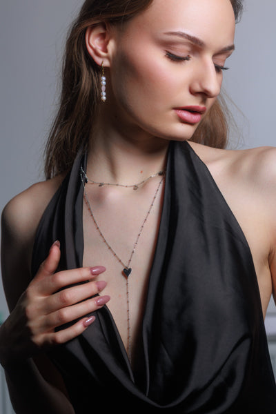 Náhrdelník Love Cascade je jako hladký proud světla, který sklouzne po tvém dekoltu. Horní vrstvy s drobnými plíšky působí hravě a jemně, zatímco dlouhá vertikální linie se srdíčkem dodá celému šperku smyslnost a elegantní drama. Je to ten typ náhrdelníku, který okamžitě vytvoří „effortlessly sexy“ vibe – ať ho vezmeš k sáčku, saténovým šatům nebo basic tílku.