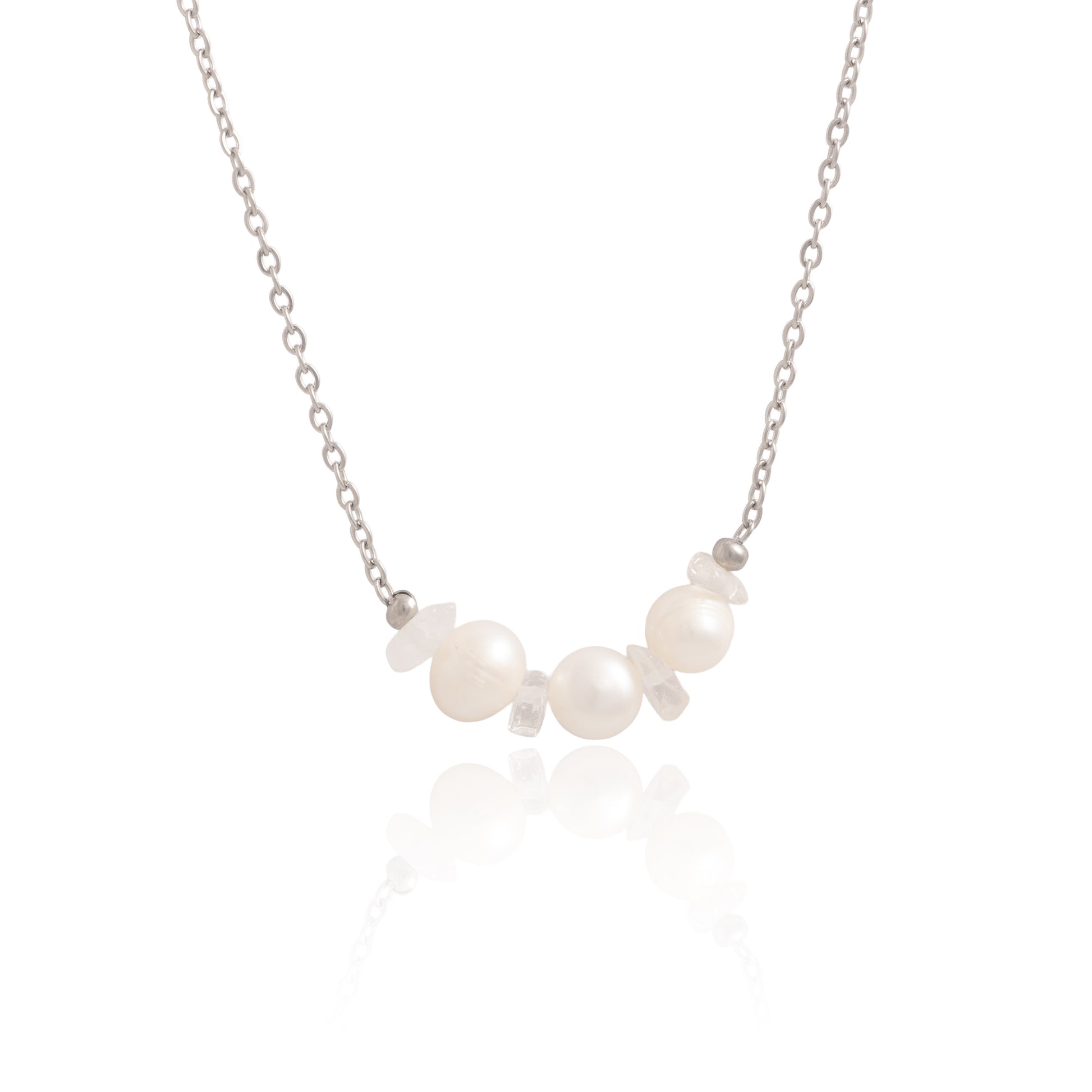 Náhrdelník Moon Whisper je symbolem jemnosti, čistoty a vnitřního klidu. Spojuje říční perly s křišťálem – dvě energie, které se doplňují jako měsíc a voda. Ručně vyrobený v Česku z chirurgické oceli, je navržen tak, aby tě provázel každý den jako talisman světla a ženské síly.
