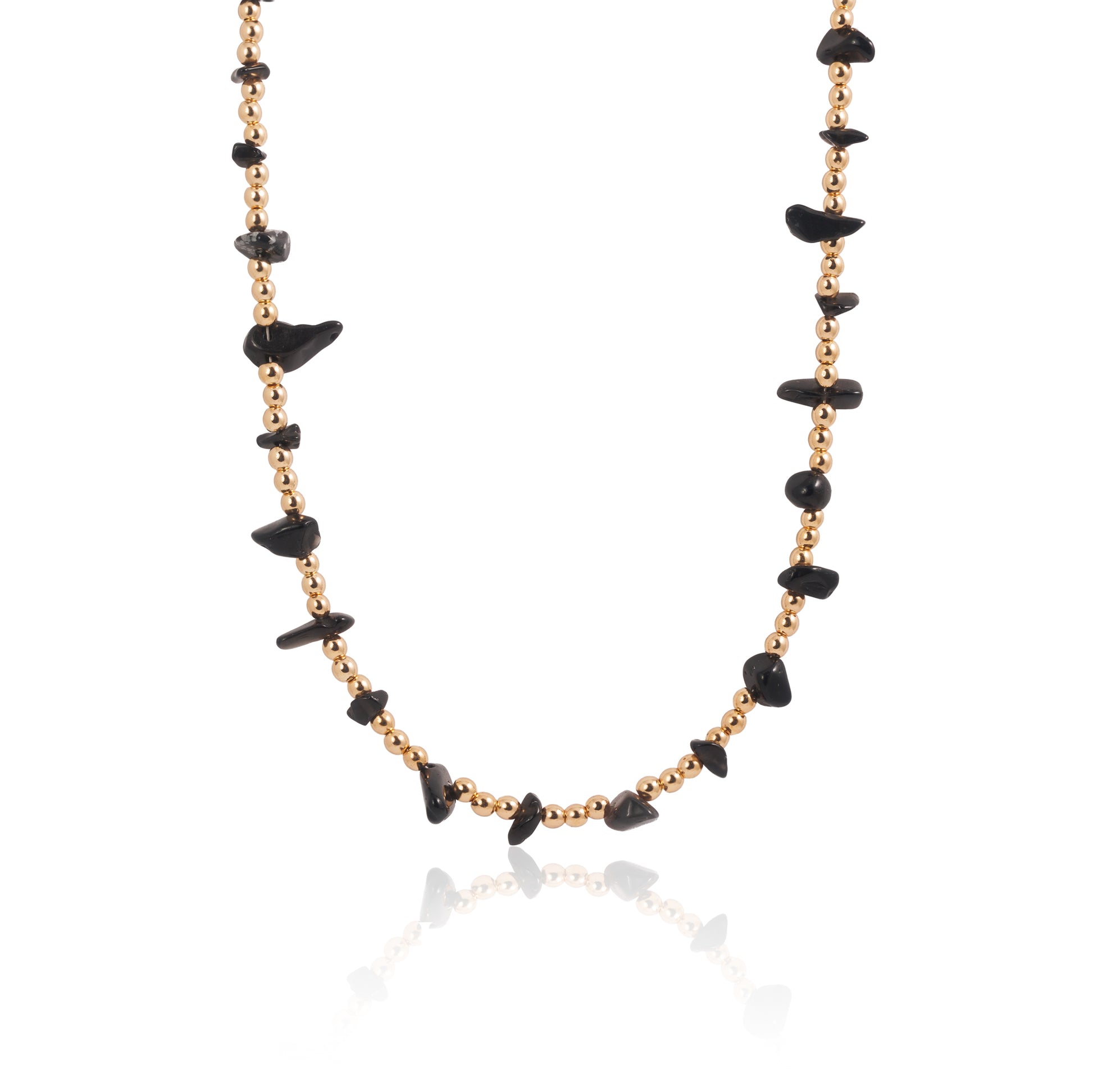 Náhrdelník Night Shift je šperk pro ženy, které vědí, že klid i síla mohou zářit zároveň. Kombinace zlatého hematitu a černého obsidiánu vytváří rovnováhu mezi vnitřní energií a půvabem – jako noc, která se nebojí být vidět.