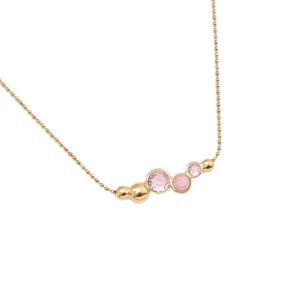 Vypadá jako pár drobných bublin, které se zastavily v čase. Lehký, hravý náhrdelník, který působí nenuceně, ale promyšleně. Růžové krystaly dodávají šperku jemnost a ženskost, aniž by sklouzl do sladkosti.