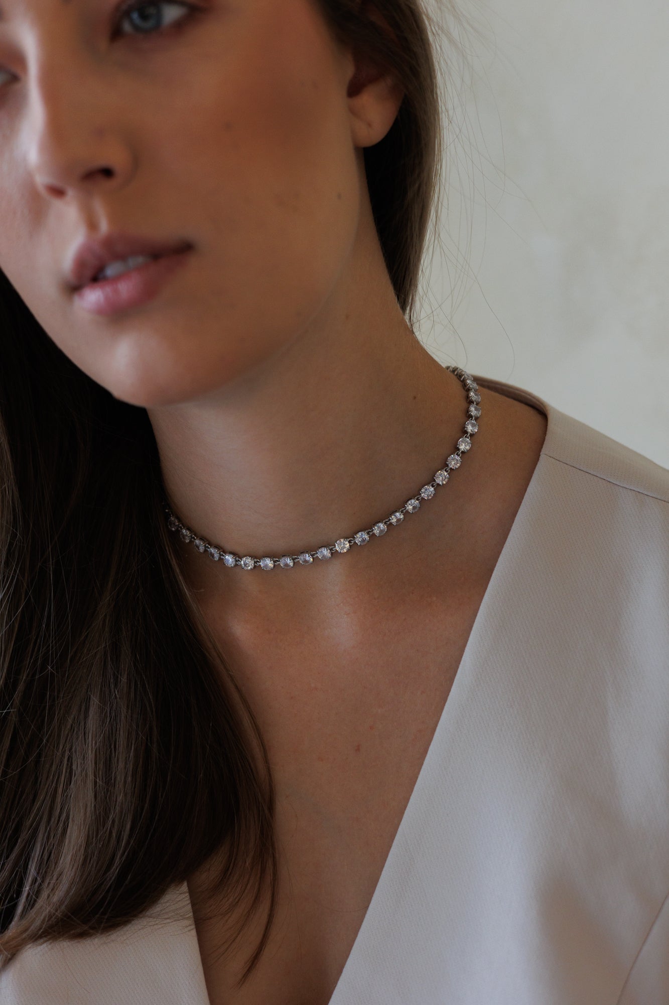 Někdy stačí jen jeden šperk, aby ses cítila jako královna večera. Tento choker se zirkony v oválném brusu odráží světlo každým pohybem a přitahuje pozornost jako magnet. Nosit ho můžeš solo nebo s vrstvením – každopádně budeš zářit.