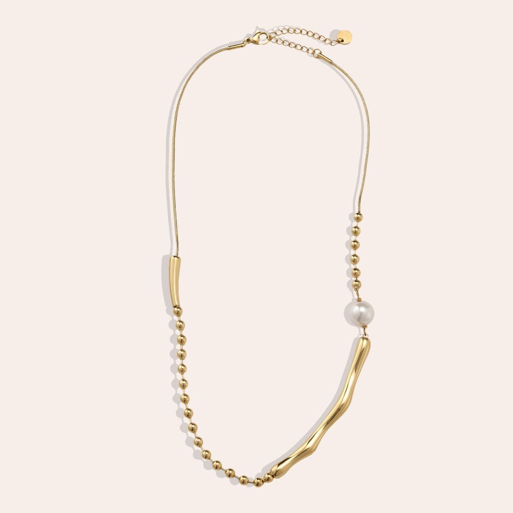Dolce Vibe je náhrdelník plný organických tvarů, který ti kolem krku rozsvítí celý den – jako když si dáš první sousto tiramisu na rozpálené terase. Perlička zaujme ale ten tekutý kov je prostě unforgettable - z každého úhlu jiný a mění obyčejné “dneska nic extra” na “proč se na mě všichni tak dívají?”.