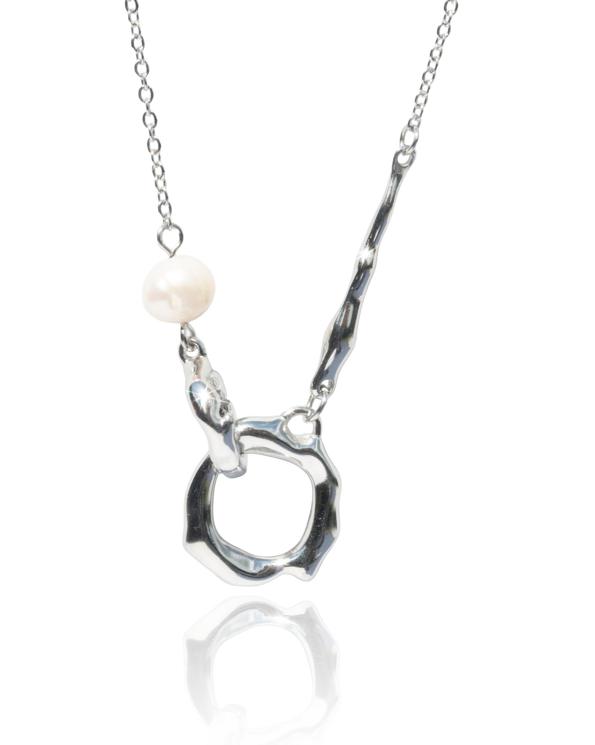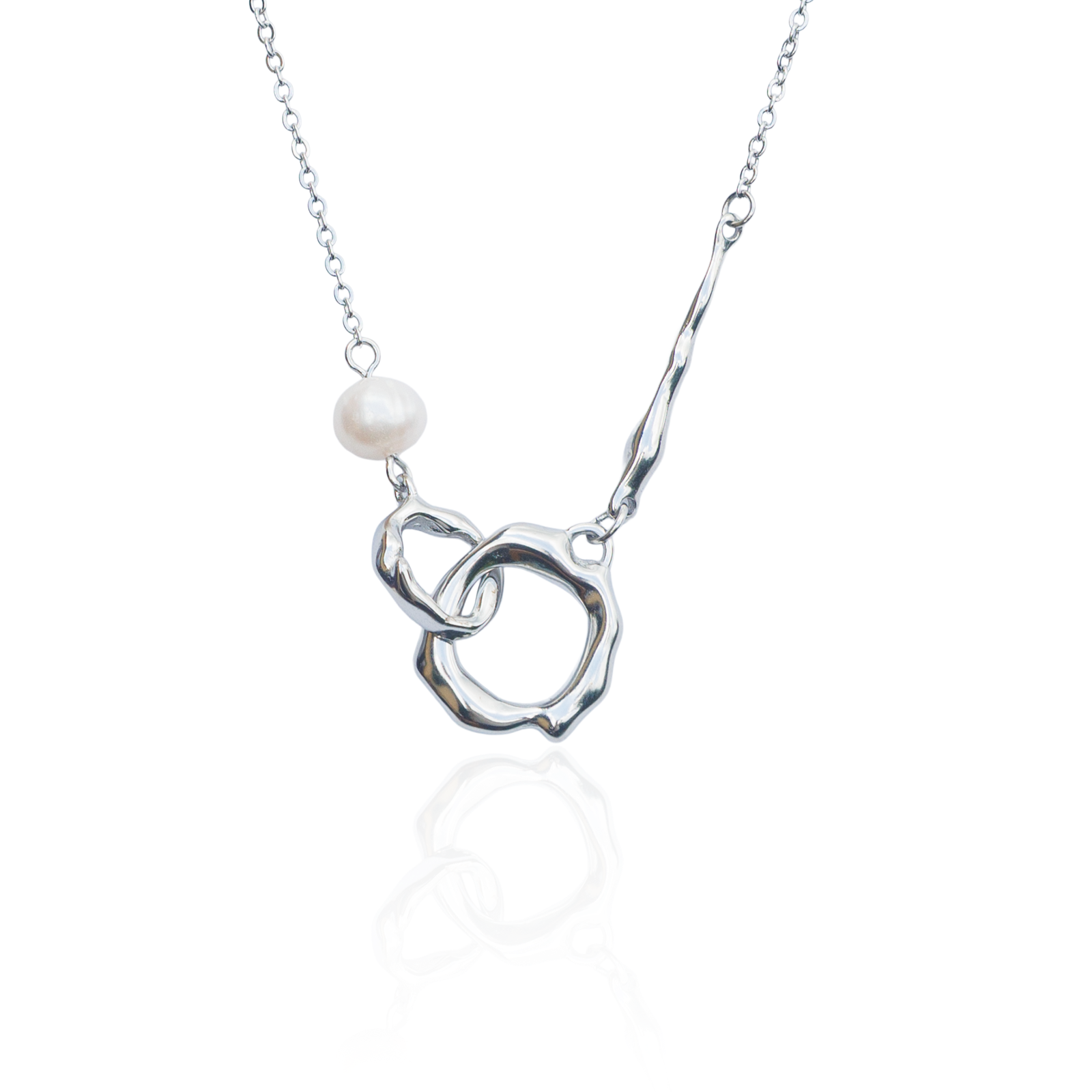 Jako kdyby se kov roztavil a ztuhl v ten nejkrásnější okamžik. Náhrdelník se sladkovodní perlou Liquid Pearl je šperkem, který nese příběh – o svobodě tvaru, přirozené kráse a síle detailu. Sladkovodní perla a zirkonie dodávají lesk a ženskou jemnost, zatímco surový tvar kroužků působí umělecky a nespoutaně. Pro ty, které si tvoří vlastní cestu.