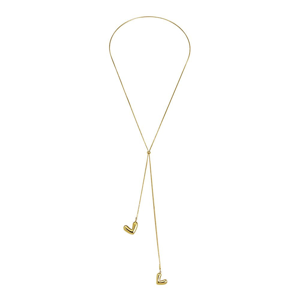 Jemný náhrdelník s dvojicí srdcí, která se potkávají i míjejí – jako dva příběhy, které se občas protnou. Jako tvůj oblíbený situationship. Ale tentokrát jsi to ty kdo si ho vezme když ma zrovna náladu. Díky posuvnému systému se přizpůsobí dekoltu i vrstvení. Minimalistický, ale výmluvný doplněk, který v sobě nese touhu, hravost i půvab.