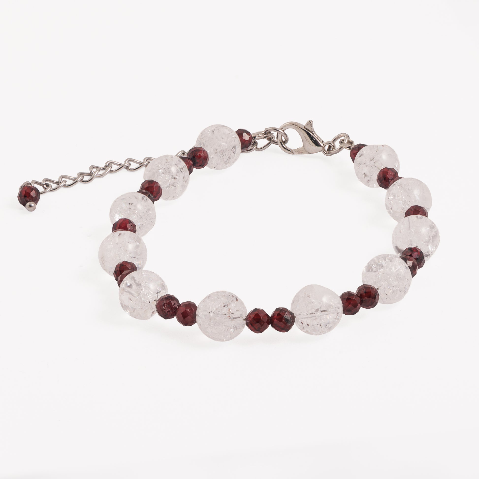 Vyrobeno z chirurgické oceli, která je vhodná i pro citlivou pokožku. Kombinace granátu a křišťálu působí nejen vizuálně silně, ale i energeticky – přináší stabilitu, sebejistotu a nechají rozzářit tvé vnitřní světlo.