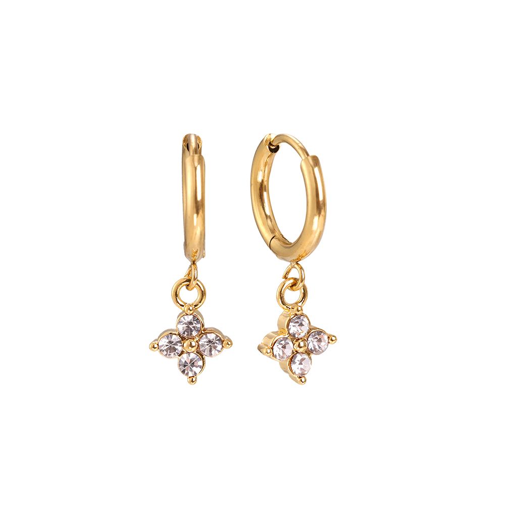 Náušnice s čtyřlístkem Crystal Darlings, pozlacené