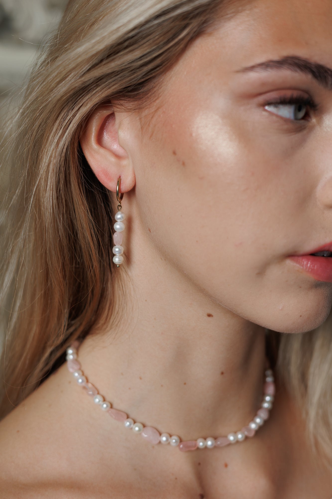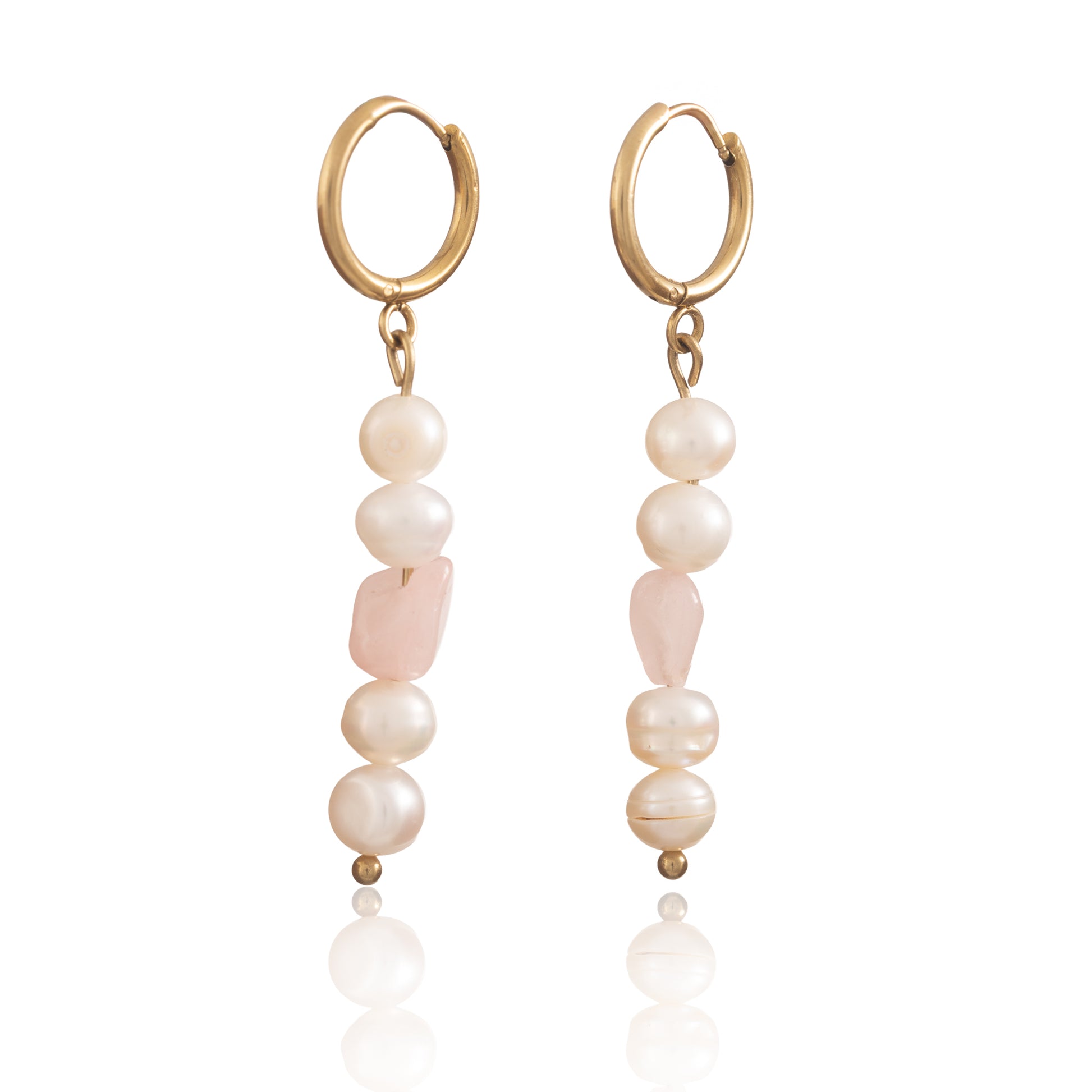 Vyrobené z pozlacené chirurgické oceli, která nečerná, nepálí a vydrží i celodenní nošení. Perly i růženín tě jemně rozzáří – fyzicky i energeticky.
