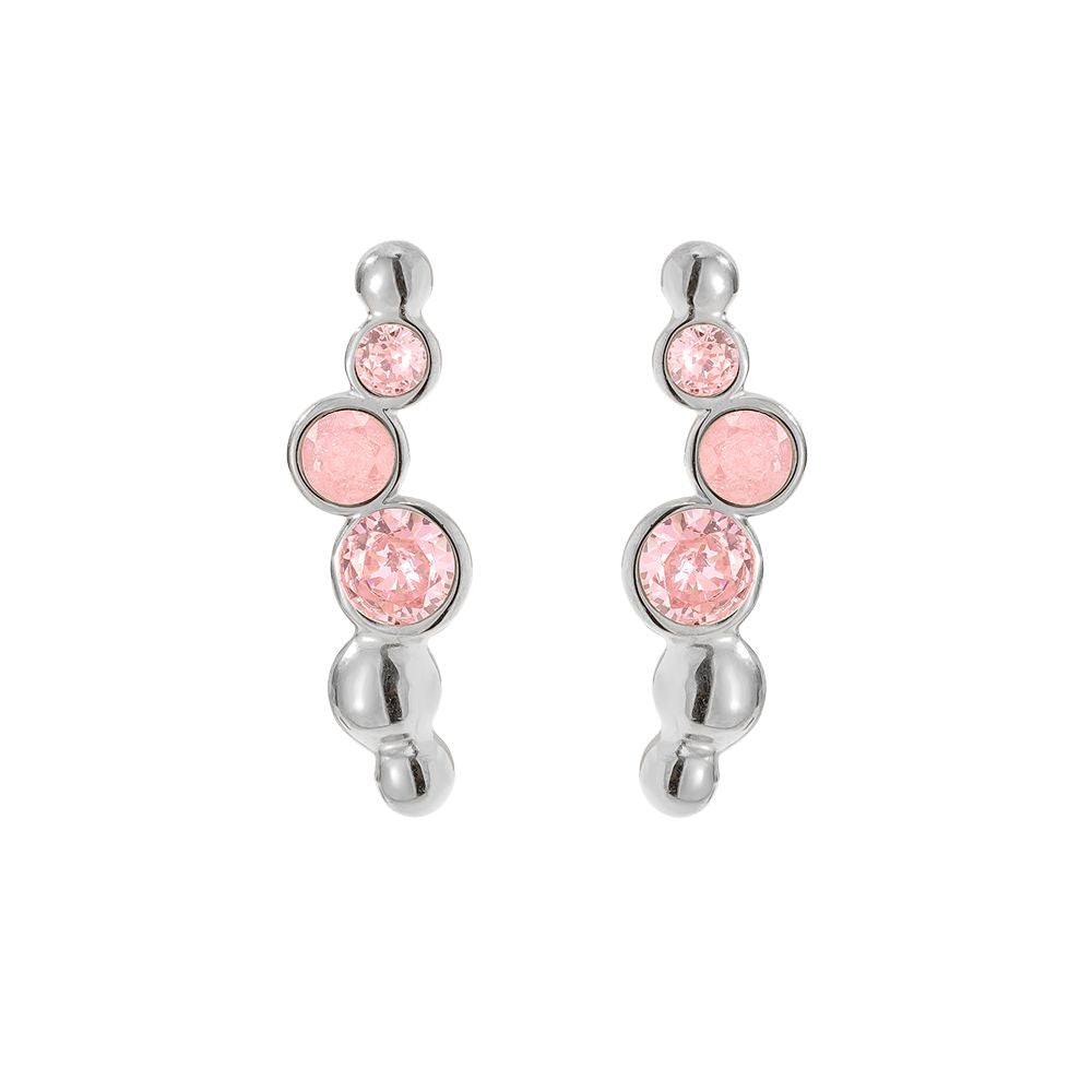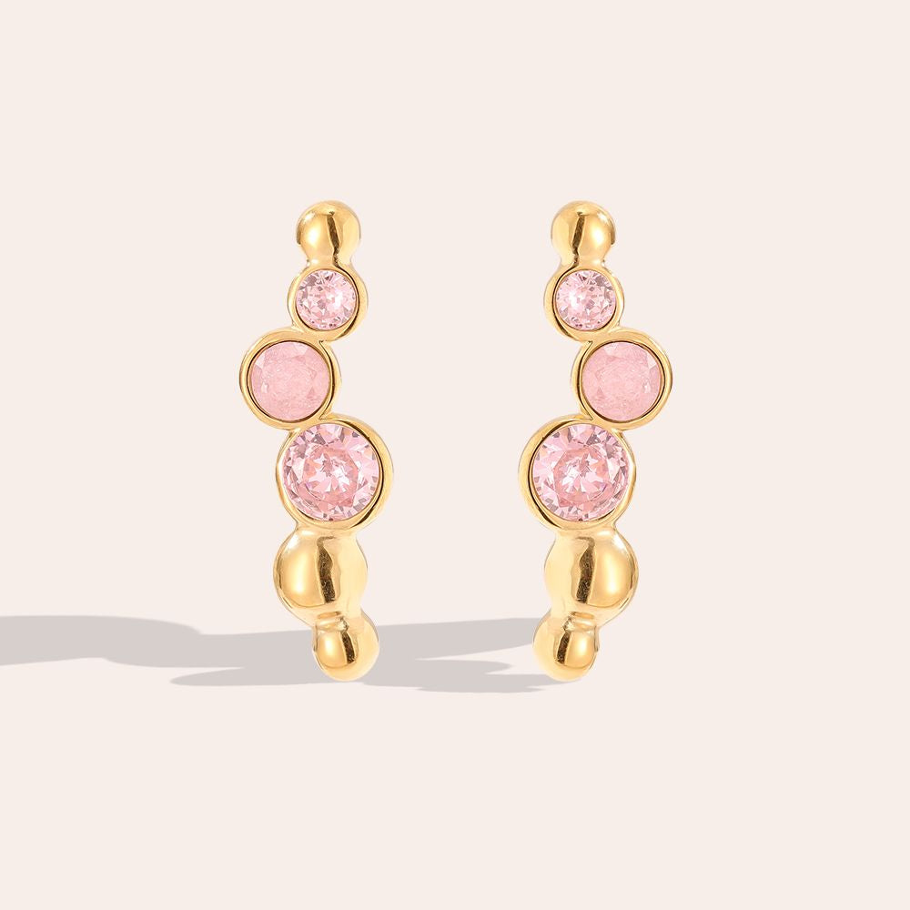 Náušnice Bubbles Pink jsou jako malá exploze radosti – růžové krystaly v různých velikostech vytvářejí efekt bublinkového třpytu, který okamžitě rozsvítí tvůj obličej. Díky jemně zakřivenému tvaru krásně kopírují linii ucha a působí svěže, mladistvě a chic.