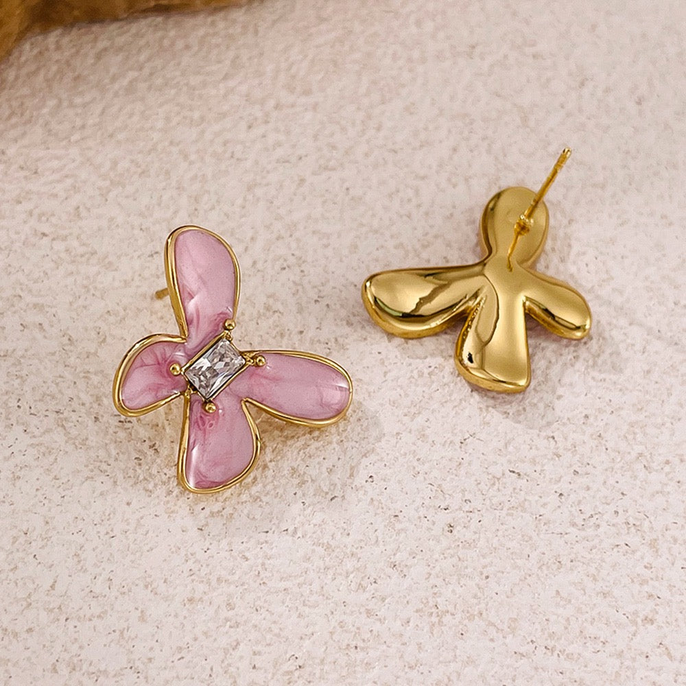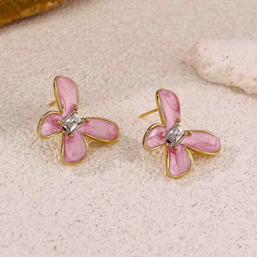 Náušnice růžoví motýlci