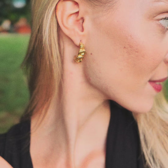 Jako láva, co stéká ušním lalůčkem. Tyhle náušnice mají divoký organický tvar, který připomíná sochařský kus přírody – jako by je někdo vymodeloval z tekutého zlata. Výrazné, hravé a nekonvenčně krásné.