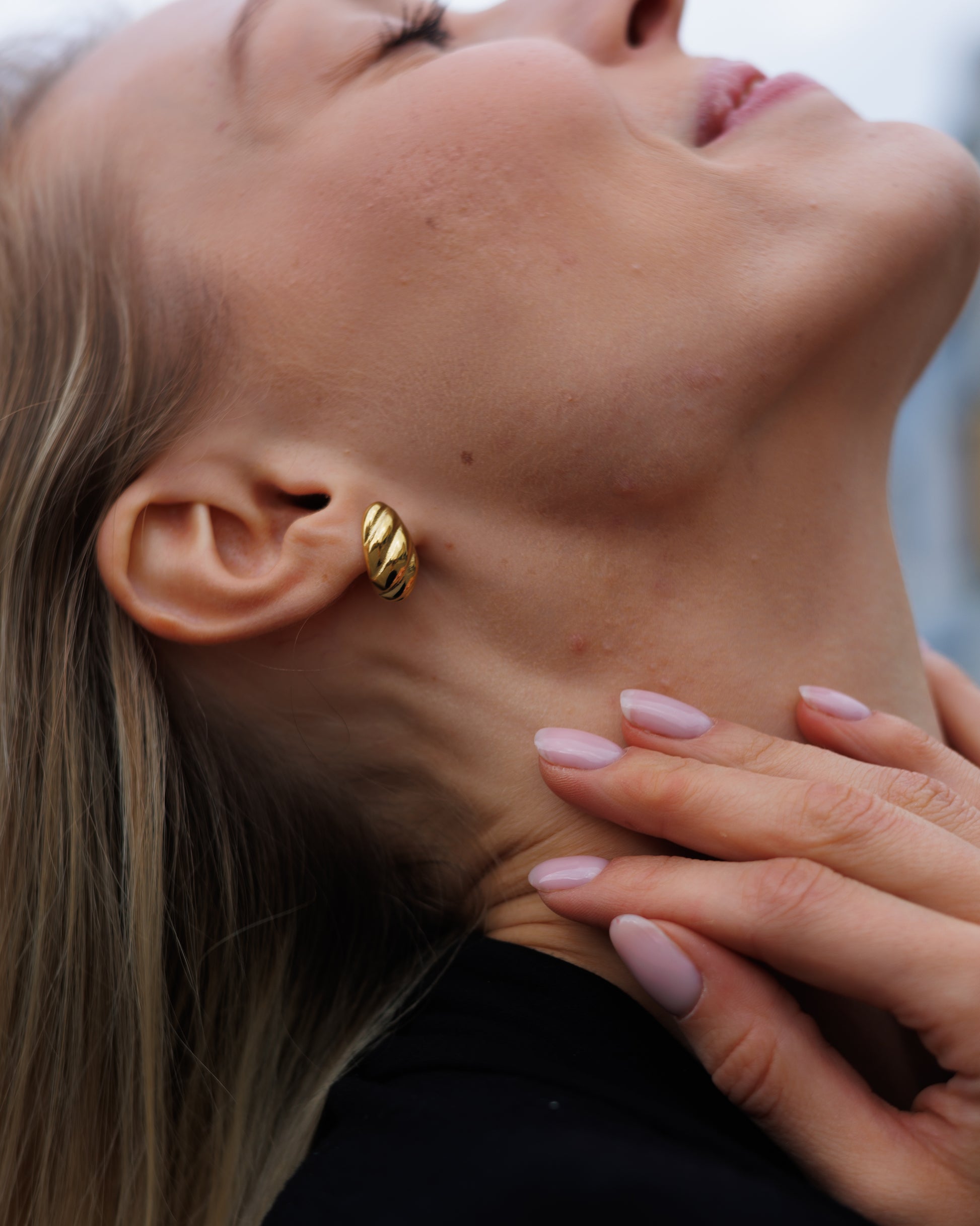 Jako zlaté vlny, co nikdy nepoleví. Náušnice Twisted mají v sobě sílu i šmrnc – minimalistické a přitom nepřehlédnutelné. Jsou jako ten moment, kdy si nandáš rtěnku a víš, že máš večer ve svých rukou. Skvěle ladí k basic tričku i saténové halence a přitahují pohledy stejně nenuceně jako ty.