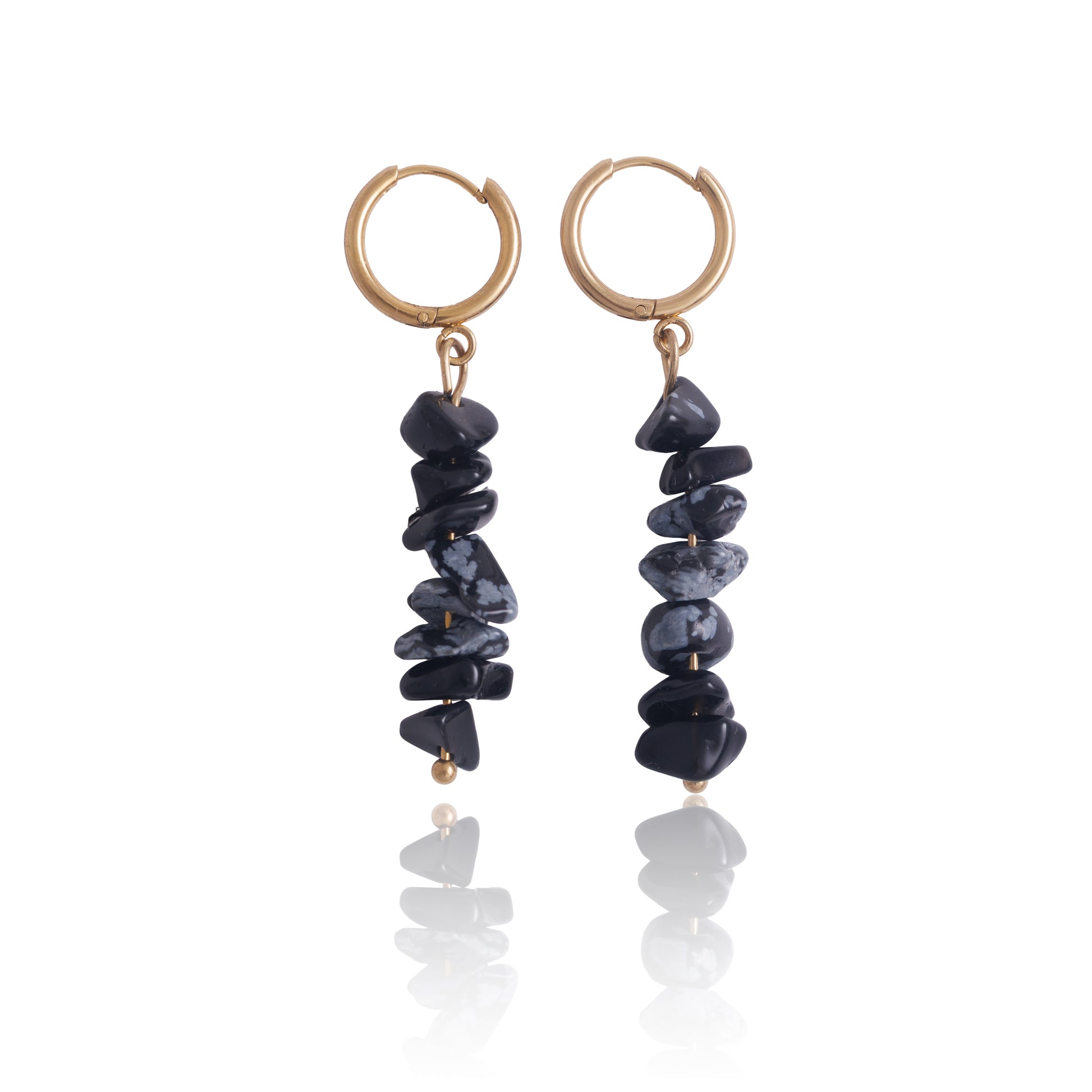 Tyhle náušnice z černého obsidiánu připomínají, že opravdová stabilita přichází zevnitř. Každý kámen je originál – stejně jako ty. Kombinace surového minerálu a zlatého lesku vytváří rovnováhu mezi klidem a odvahou.