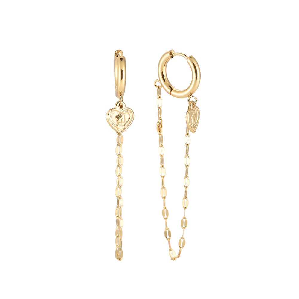 Pozlacené náušnice Heartline jsou jako malá připomínka toho, že krása je někdy v těch nejjemnějších detailech. Dlouhý zlatý řetízek se houpá při každém kroku a drobný přívěsek ve tvaru srdce dodává celému designu poetický nádech – tak akorát romantický, tak akorát drzý.