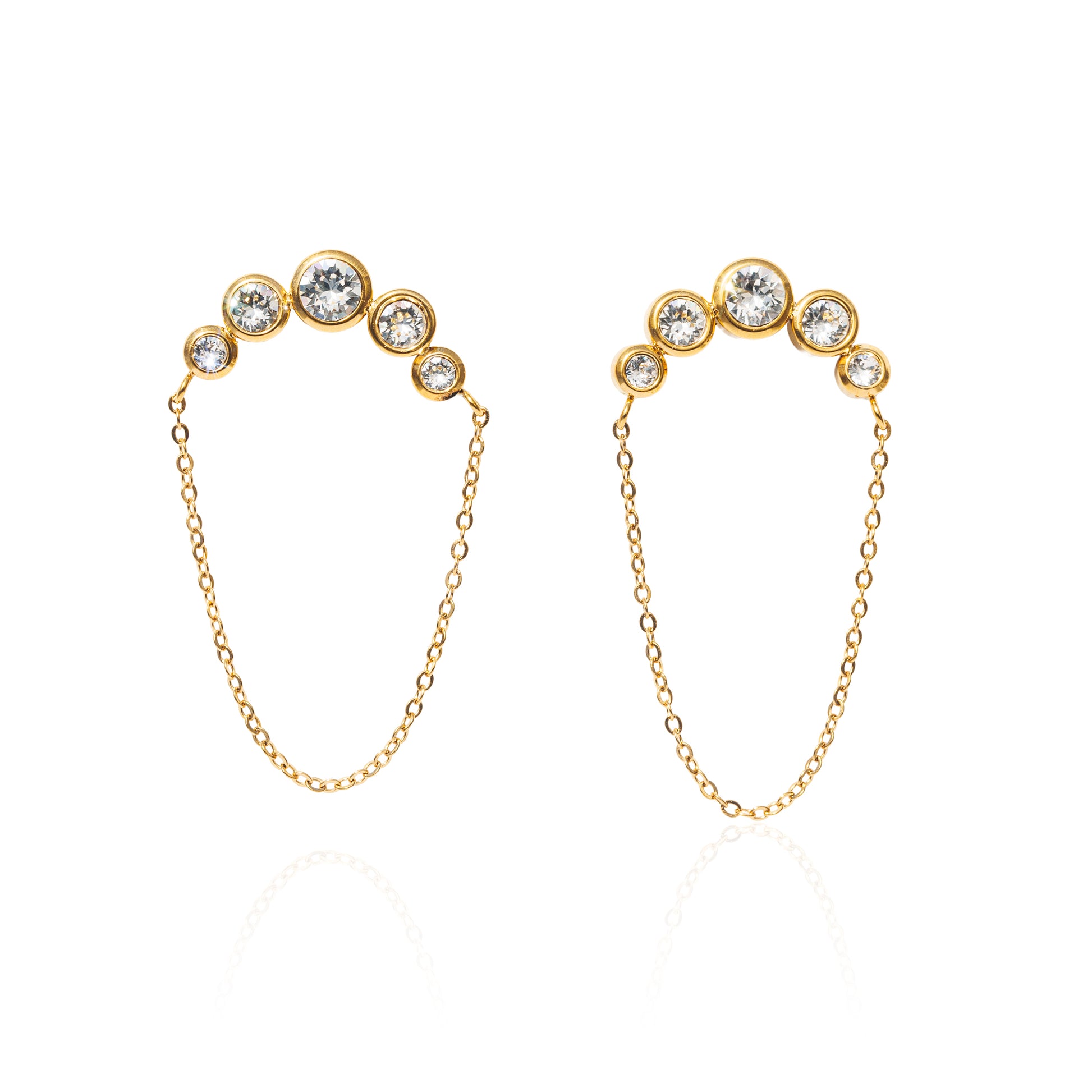 Náušnice Moonlight Chain připomínají třpyt hvězd pospojovaných zlatým řetízkem. Elegantní půlkruh z krystalů Swarovski září jako noční obloha a jemný řetízek dodává šperku hravost i smyslnost. Jsou to náušnice, které z tebe udělají hvězdu večera – ať už jdeš na party, romantickou večeři nebo jen potřebuješ dodat kouzlo svému každodennímu looku.
