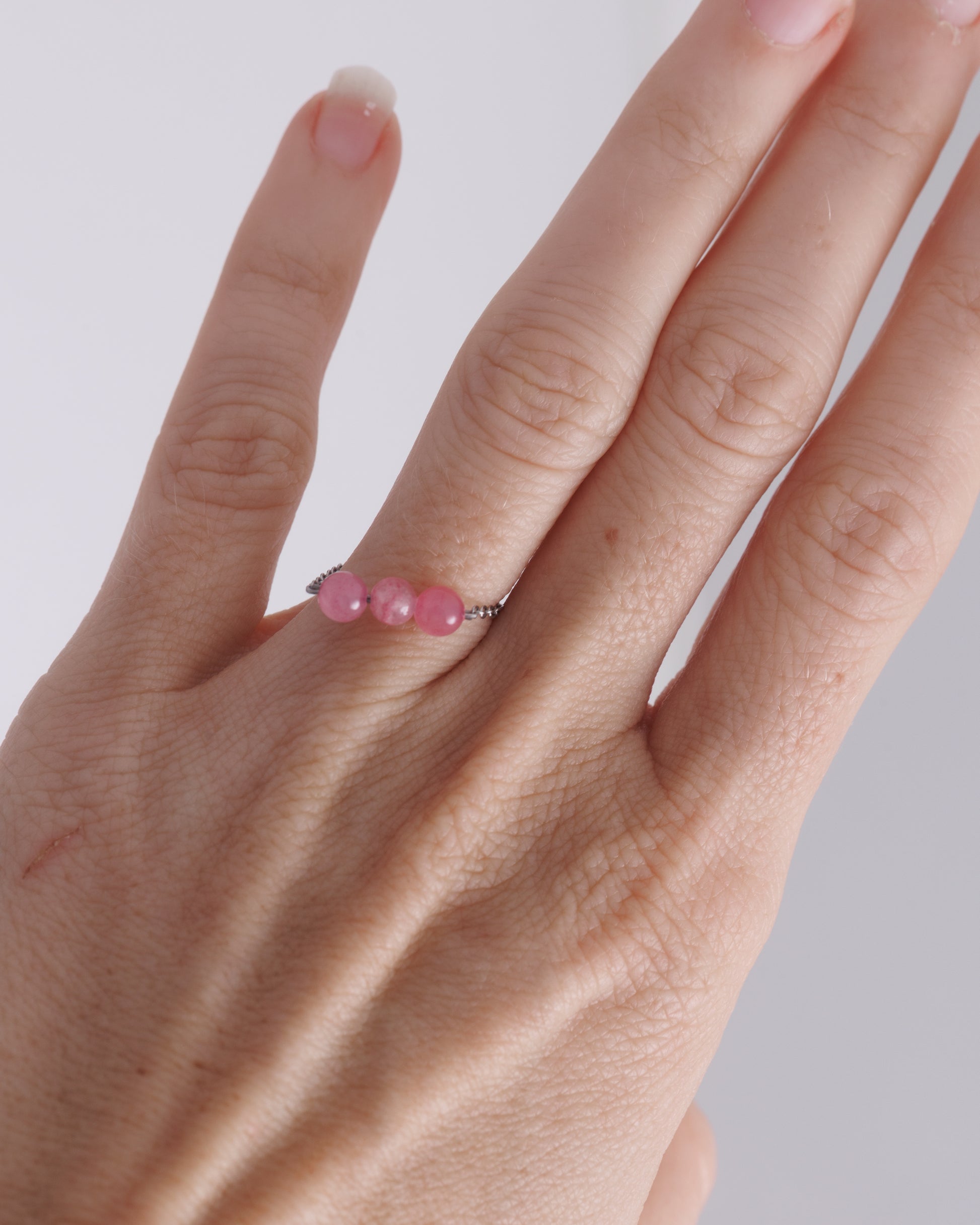 Prsten Lásky s růžovým chalcedonem přináší klid, rovnováhu a podporuje sebevědomí, které pramení zevnitř. Každý kamínek má svůj odstín růžové, stejně jedinečný jako tvoje nálada v daný den.