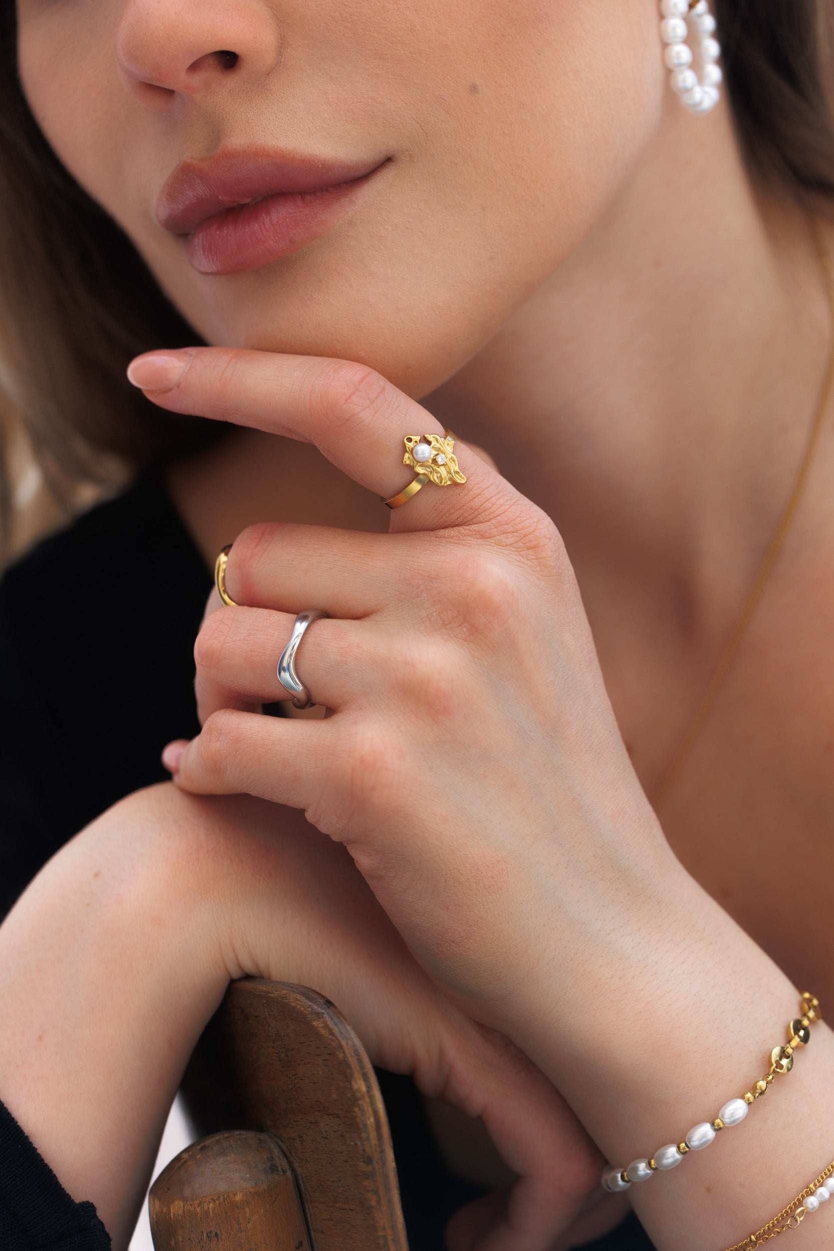 Prsten s perlou Floréa je jako zlatý květ, který rozkvétá na tvé ruce.