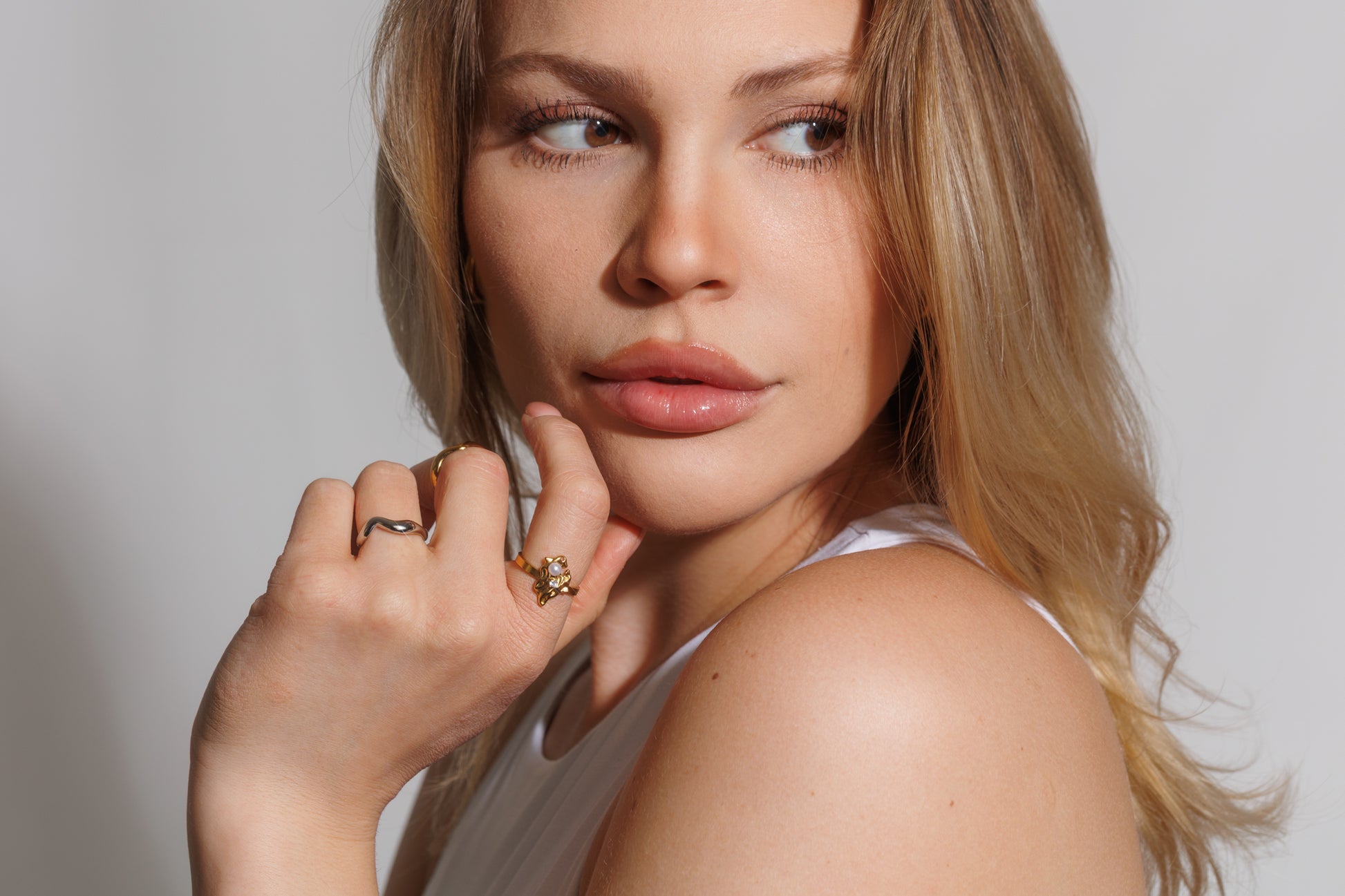 Organický tvar, zirkon jako kapka rosy a perlička jako skrytý poklad – tenhle prsten je malým uměleckým dílem. A díky nastavitelné velikosti ti sedne, ať jsi kdokoli.